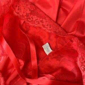 Vanity Fair Vtg 50s 60s Slip Chemise Lipstick Red Tricot Nylon Lace Bodice Lacy