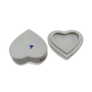 This vintage porcelain vanity set by CP features an elegant floral motif. Includes tray, heart-shaped trinket box, and ring holder. Delicate craftsmanship. • Handcrafted in the German Democratic Republic • Includes a rectangular tray, heart-shaped trinket box, and ring holder • Features gold trim and floral pattern • Made in Germany Dimensions: Ring Holder: H 2.7 x W 3.1 x D 3.1 inches Trinket: H 1.6 x W 2.5 x D 2.5 inches Tray: H 0.8 x W 5.5 x L 9.4 inches Condition: Pre-Owned Good Below the base of the tray there is a small unglazed section and surface wear. Please see photos. Does not include original box or paperwork.