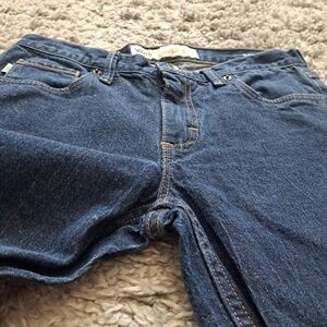 Vans | Blue V76 women's skinny Jean 32 x 32 with crinkled acid wash pre owned. condition lightly used(the faded crinkled lines are part of intentional Jean style)