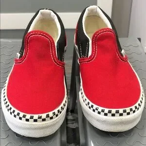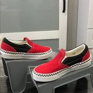 Vans Classic Slip-On Sneakers – Red & Black + Checkered – Toddler Size 11 US