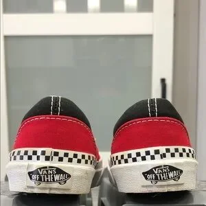 • Color: Red and black canvas with white checkerboard trim above the sole