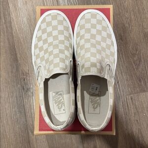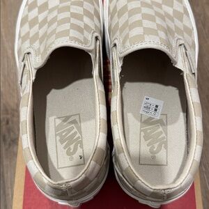 Colour is mushroom/marshmallow. Cute platform version of the classic vans slip on. Gently worn.