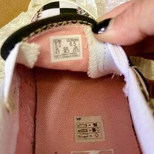 Pink , black and white flowers/ checker board.
