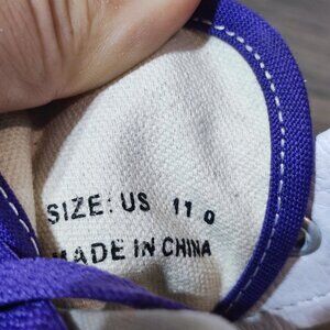 FEATURES/ACCENTS: Low top style. Logo accents. Round toe. Green and white basic colour with purple detail. Lace up closure.