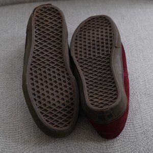 -Constructed of a soft suede leather of a reddish burgundy colour.
