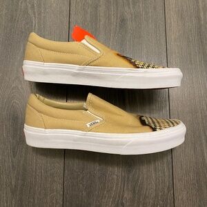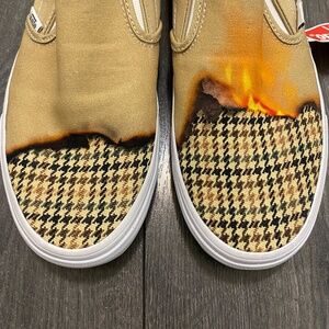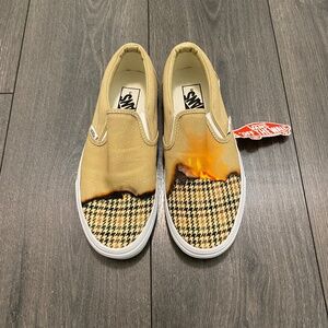 Vans Houndstooth Taupe Flame Low-Top Classic Slip On Size 8