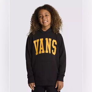 The Kids Varsity Hoodie uses bright yellow logo lettering at the center front to make bold Vans statement inspired by old school sport uniforms.
