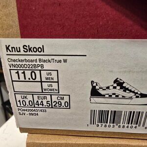 Vans Knu Skool Black White VN000D22BPB Sneaker Shoe Trainer Checkerboard SZ 11