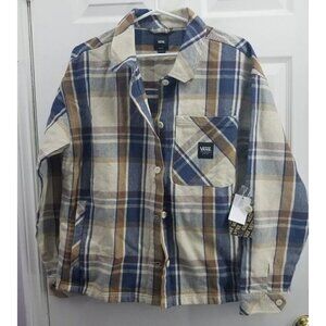Stay stylish and comfortable in the Vans LOCKWOOD SHACKET oatmeal. This new-with-tags jacket is perfect for women who want a versatile and trendy piece to add to their wardrobe. Made with 100% cotton, this basic jacket is perfect for everyday wear.