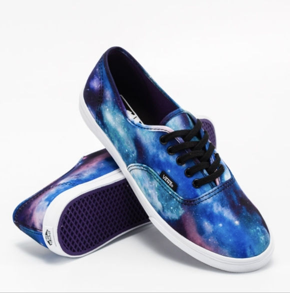 The Cosmic Galaxy Authentic Lo Pro is an outer space-inspired graphic print on canvas uppers. The Authentic Lo Pro has a slimmed down profile and vulcanized micro rubber Waffle Outsole. Please note that because of variations of the Cosmic Galaxy print's patterns and colors, each pair will be unique and will not be identical to the stock images shown.