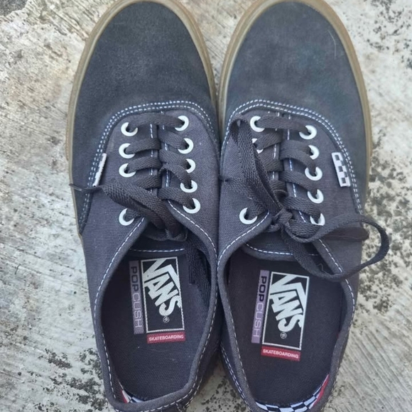 Classic Vans sneakers in charcoal. Durable and stylish for everyday wear.