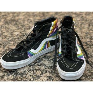 Vans Men's Sk8-Hi Refract Black True White Multi Canvas Suede shoes Size 9.5