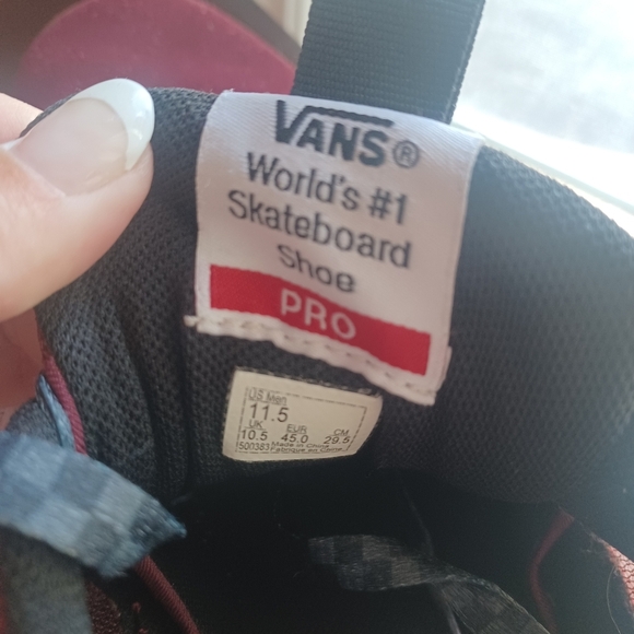 Stylish Vans sneakers in maroon with white accents. Ideal for everyday wear.