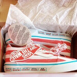 Vans Of The Wall Red and White Stripe Where's Waldo Sneakers Size US Kids 12