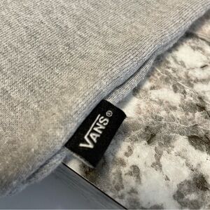 This Vans crewneck sweatshirt in a light heather gray offers a soft, cotton-blend fabric for ultimate comfort. It features long sleeves with ribbed cuffs and a subtle logo on the chest, making it a stylish and cozy choice for any casual occasion. Minor pilling as shown in the last photo.