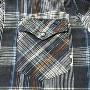 Vans Off The Wall Long Sleeve Pearl Snap Grey Rust Blue Plaid Western Shirt