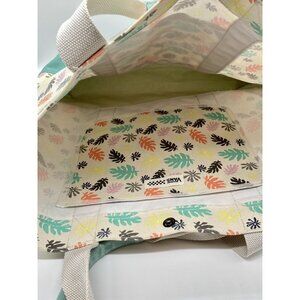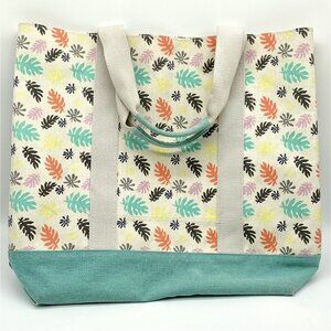 Vans Off The Wall Reusable Large Tote Bag Bonsai Leaf Leaves Cream Aqua Teal. This tote bag is beautifully made of solid canvas material. The colors really pop and it’s an eye catcher. Measures 17.5” long by 15” high. It’s in very nice used condition with just a little bit of wear on the bottom edges.