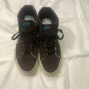 Vans Off The Wall Sk8-Hi shoes Brown Suede/Tan canvas/teal stitching US 6
