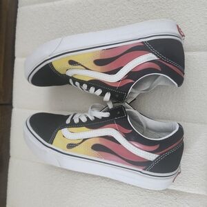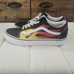 Vans Off The Wall skateboard sneakers in a striking flame design, made of durable suede.