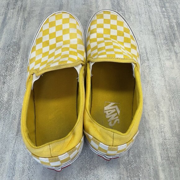 Vans Off the Wall Classic Slip On Shoes Womens 8 Yellow White Checkered Sneaker
