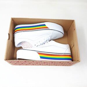 Vans Old Skool Stackform Platform Shoe Sneaker White Pride Mens 7 / Womens 8.5