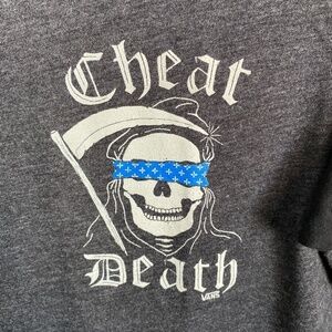 Vans Original T-Shirts Men's Gray "Cheat Death" Print Tee Size Small