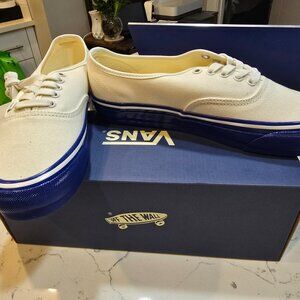 Vans Premium Authentic 44 White Blue DUCK CANVAS Mens Size 10 VN000EBNZ5D NEW