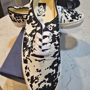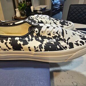 The Vans Premium Cow Authentic 44 Unisex Fashion Shoes in size 12 are stylish and comfortable sneakers perfect for activewear and casual occasions. Featuring a lace-up closure and a low top shoe shaft style, these shoes are cushioned, breathable, and made with synthetic lining material for added comfort. The cow print and marshmallow color design adds a trendy touch to the classic Vans Authentic shoe, making it a versatile choice for any season. Made in Vietnam with canvas upper material, these shoes are ideal for gym training, crossfit, and skateboarding activities.
