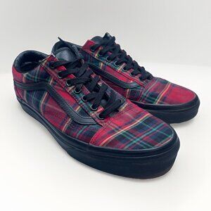 Vans Red, Green, Black Punk Mix Plaid Low Top Skate Shoes Wom 10.5 US