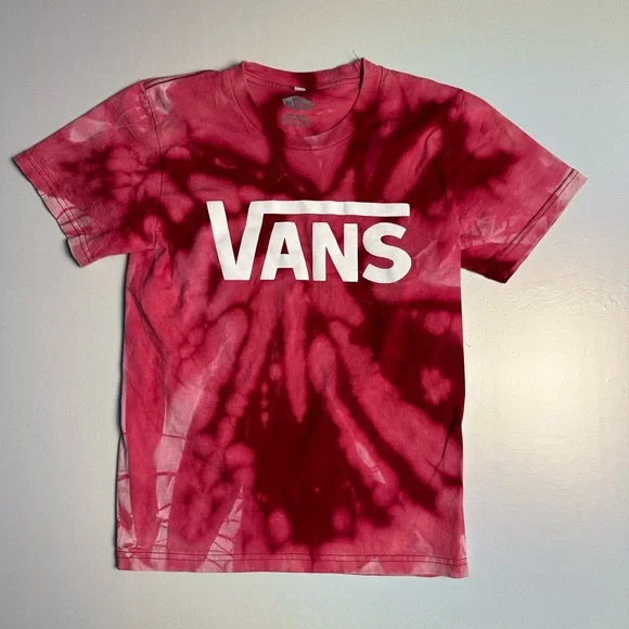 📍: Vans tee we customized with a spiral tie dye design, shirt was originally all pink then we customized!