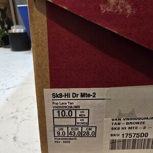 Vans Sk8-Hi Dr MTE-2 Boots Pop Lace Tan Mens Size 10 VN0009QMJM9 NEW RARE