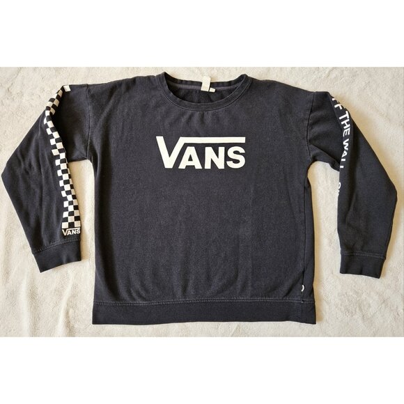 Vans Sweatshirt Womens Large Black Long Sleeve Pullover Checker Sleeve