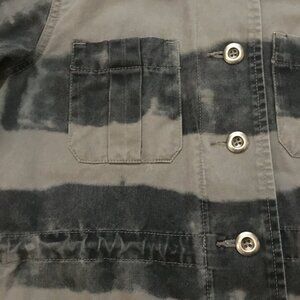 Excellent preowned vintage condition, black and grey tie-dye striped utility jacket by Vans. Sold in Fall of 2014. Very good condition with robust metal buttons. Unsure whether this is for children or adults as it fits a bit snug for a large. Please refer to measurements.