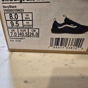 The product is a pair of Vans Ultrarange Exo MTE-1 skateboarding shoes in navy and black, size 8 for men. These athletic shoes designed for skateboarding feature the Vans UltraRange model and are part of the VANS UNTRARANGE EXO WW product line. They have a stylish design, with a blue color and a sneaker style, perfect for skateboarding performance and activity. The shoes are brand new and rare, offering a high-quality and unique option for skateboarders looking for both style and functionality.