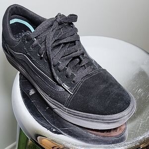 Classic Vans sneakers in black with gray accents. Perfect for daily use. classic mens size 9 almost perfect condition.