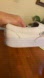 Vans slip-on shoes in white. Features perforated design with a leather like fabric. I don’t know that they’re real leather. Could be faux leather.