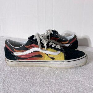 Vans Unisex Old Skool Low Top Lace Up Yellow Red Flame Skate Shoes 10.5
