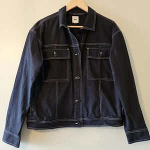 Contrast topstitching pops on an oversized canvas jacket that makes any outfit look instantly cooler.