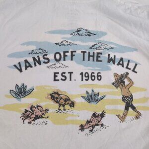 Vans Women's White Graphic T-Shirt Beach Summer Retro Colours, Small