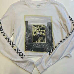 Vans cropped skater graphic daisy logo long sleeve white top women's size XS