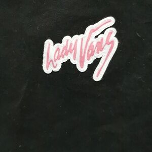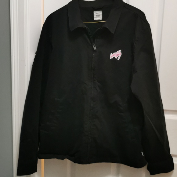 Light jacket . Good condition . 2 front pockets. Snap cuffs zip up says lady vans on front pink rose on sleeve