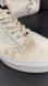 Cream Vans sneakers with unique black pattern. Ideal for everyday style. Wear and stains but no tears.