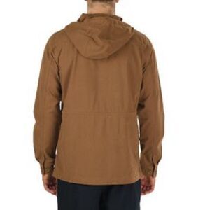In excellent preowned condition this cool Vans Gaskin Jacket is a 100% BCI cotton twill military jacket with a snap front placket, full hood, and front patch pockets. A timeless piece in a classy toffee/ tan tone.