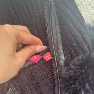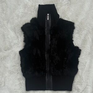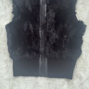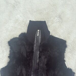 Chic and cozy Vantage black rabbit fur vest in size Medium. Features a soft genuine rabbit fur front, ribbed knit sides and back for a flattering fit, and a full front zip closure. A versatile, statement layering piece perfect for fall and winter.