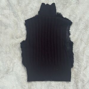 Vantage Black Rabbit Fur Knit Vest | Size M | Luxe Layering Fall/Winter Staple
