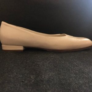 Off-white leather flat from the since-closed Varda boutique in Soho, NYC. Take a good look at the classic lines here: gorgeous toe shape - not too round, not too square, just right (and no toe cleavage!). Excellent quality, handmade, genuine leather. I loved these and wanted to wear them but they're just a smidge too small. Let my misfortune be your gain (these really are a steal)!