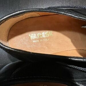 Classic and sophisticated, these Varese black leather lace-up shoes offer timeless style and Italian craftsmanship. Perfect for work or casual wear, these shoes feature premium leather construction with a durable sole.