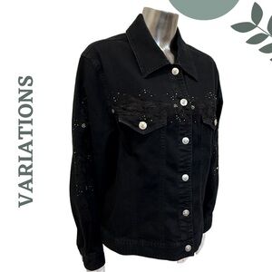 Variations Black Denim Jacket with Lace & Rhinestone Detail Size Medium