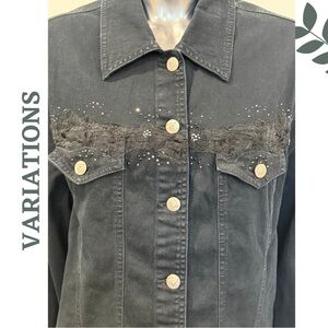 Variations Black Denim Jacket with Lace & Rhinestone Detail Size Medium