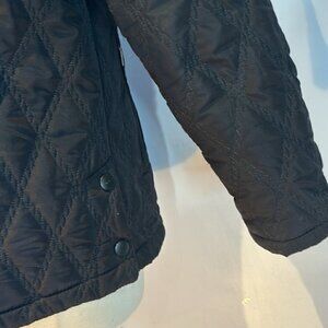 Variations black quilted nylon zip front light jacket size medium